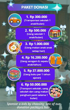 6. Rp 50.000.000,- (Transport sekolah, uang sekolah dan uang makan penghuni panti selama 1 bulan)